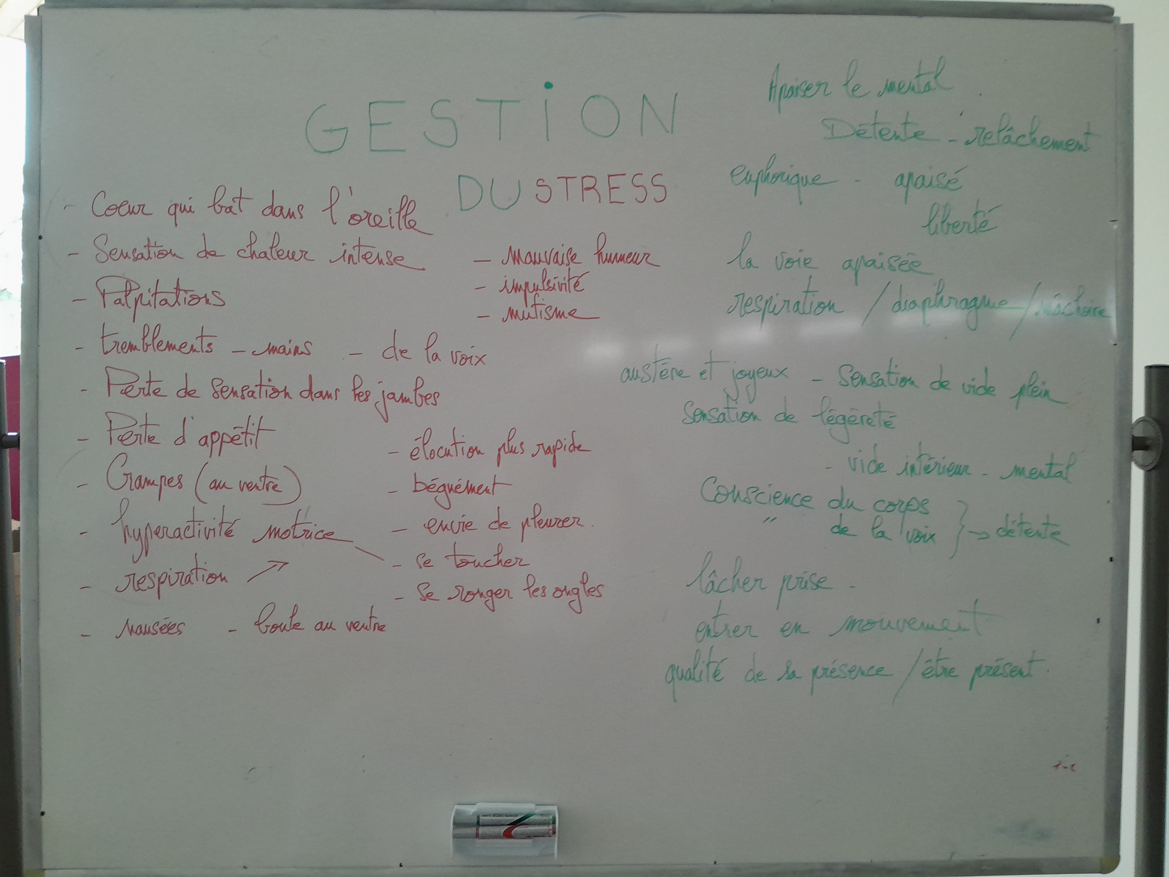 - un temps de réflexion sur ce que signifie pour eux le stress