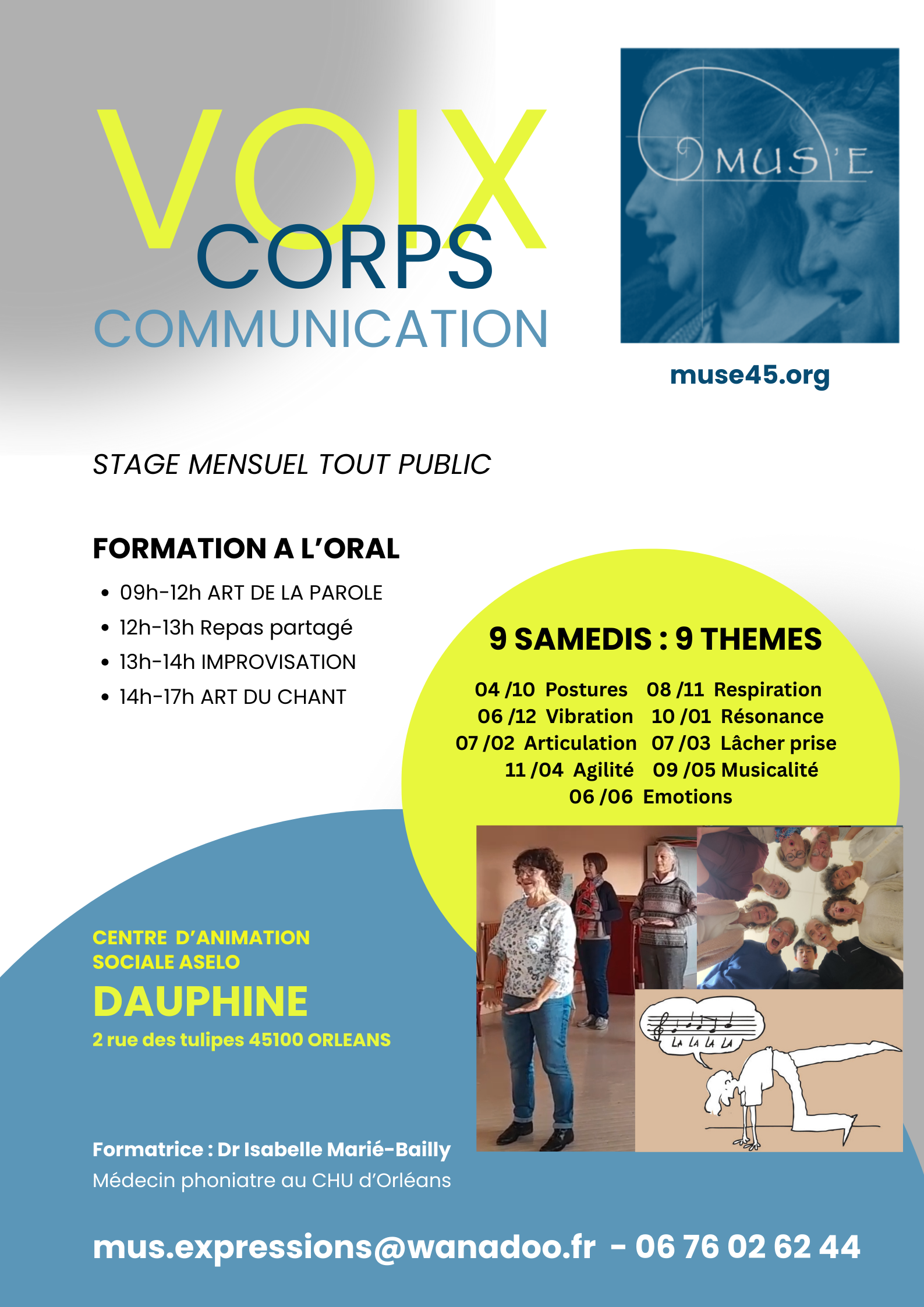 - Stage VOIX CORPS COMMUNICATION – 1 samedi par mois : 1ère session samedi 4 octobre